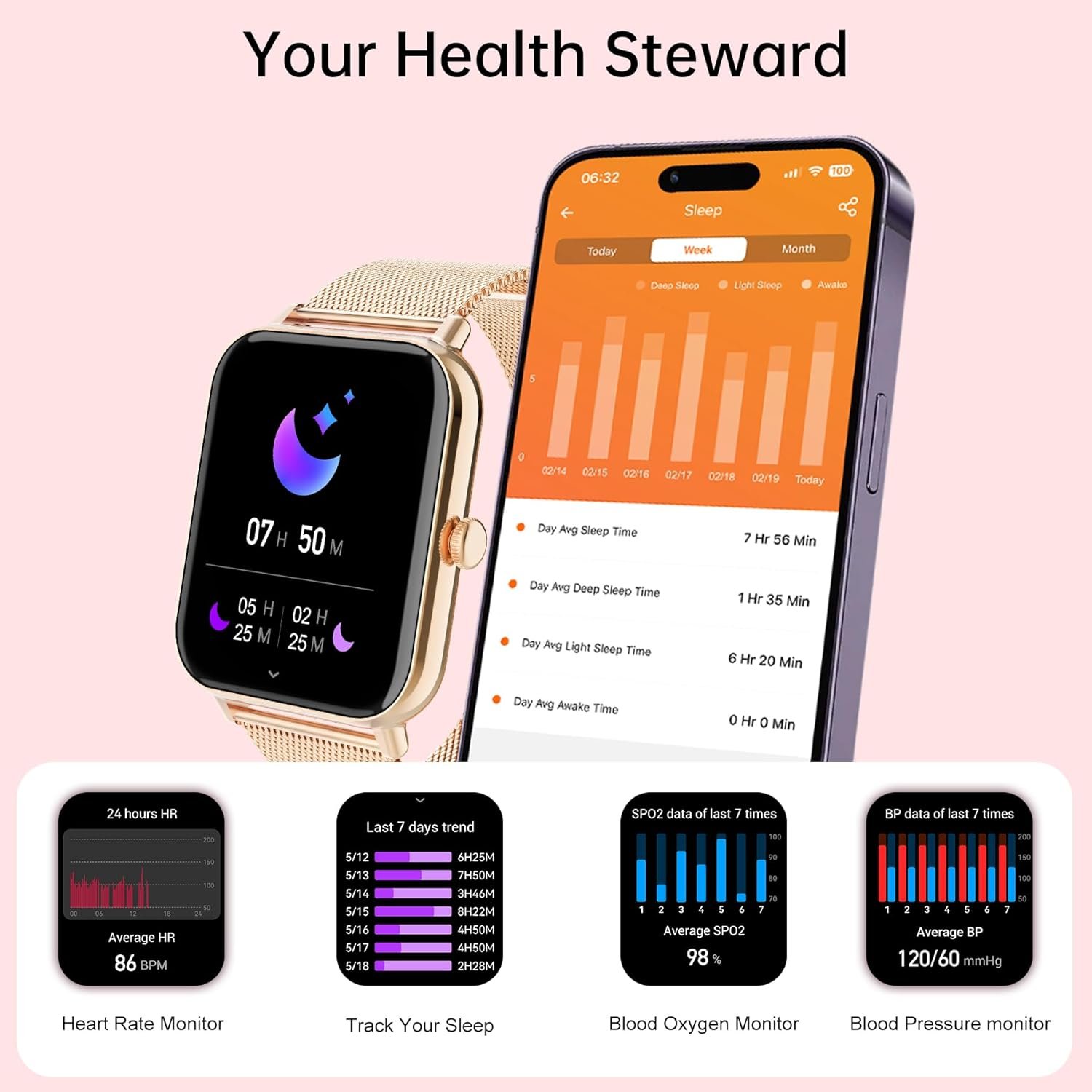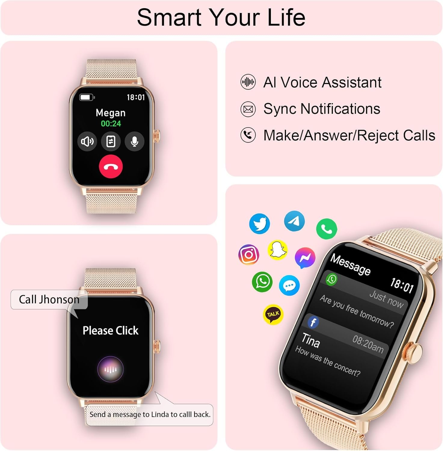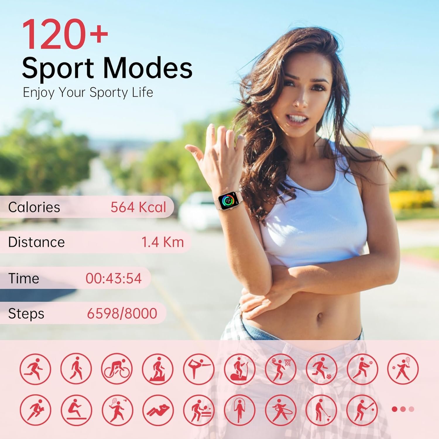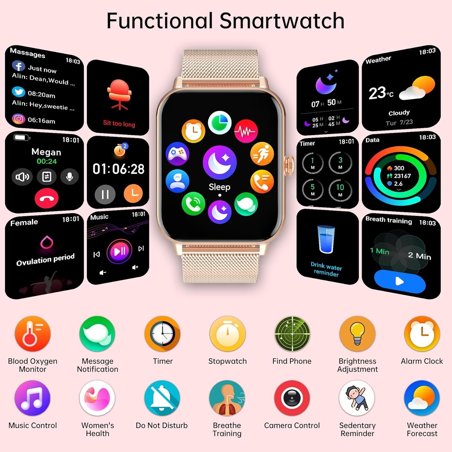 - Betatree Smartwatch for Women and Men with Call Function and WhatsApp Notifications, 1.85 Inch Digital Fitness Watch, Pedometer, 120+ Sports Modes, iOS Android Smartwatch with Sleep/Heart Rate Monitor